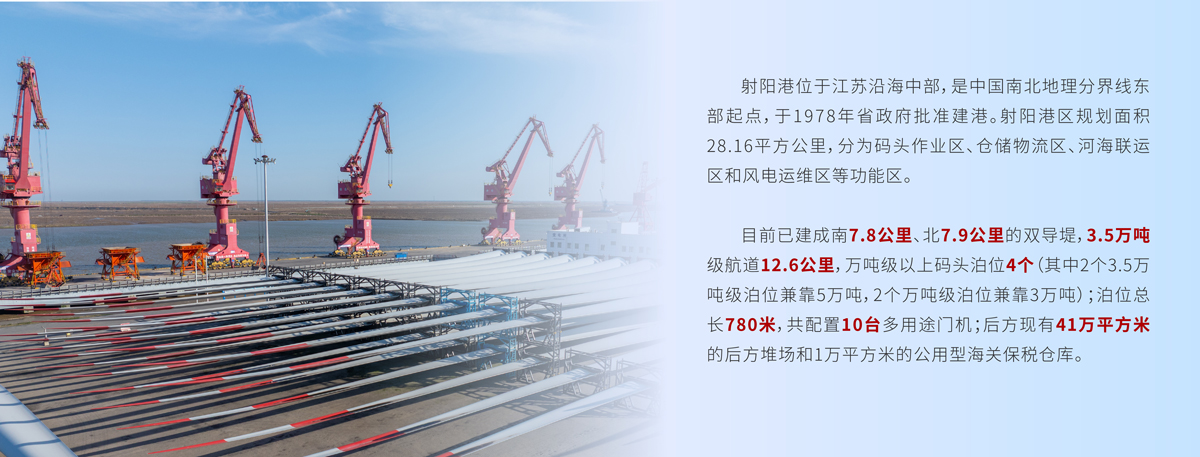 射陽港區將持續延伸“港口+物流”服務鏈條,探索“港口+產業鏈”、“港口+供應鏈”,推動“三鏈融合”在風電全生命周期體系中發揮主導作用,致力打造具有全球影響力的風電產業特色港。