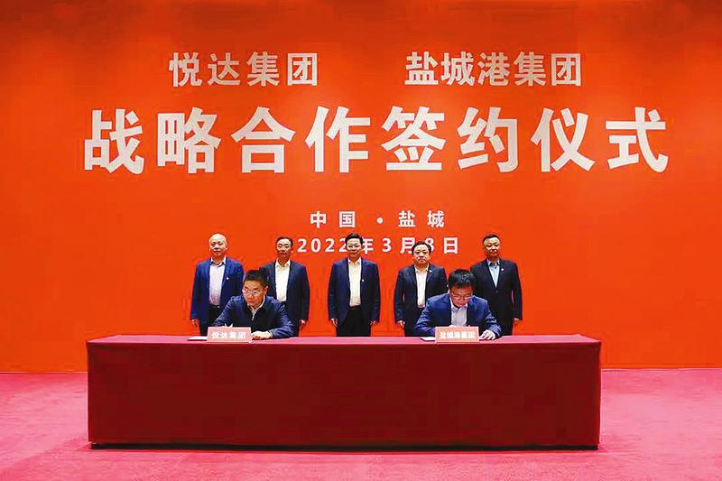 張乃文表示,譜寫“強富美高”新鹽城現(xiàn)代化建設的新篇章,最大優(yōu)勢在沿海、最大機遇在沿海。在沿海開發(fā)疊加機遇和“雙碳”背景下,悅達集團與鹽城港集團強強聯(lián)合,協(xié)同發(fā)力能源、汽車、物流、金融、基金等領域,既貫徹了市委、市政府關(guān)于打造特色優(yōu)勢產(chǎn)業(yè)、優(yōu)化國有資本戰(zhàn)略布局的重大部署,又有利于兩大集團發(fā)揮各自主業(yè)優(yōu)勢,推進融合互補發(fā)展。希望雙方以此次戰(zhàn)略合作為契機,加快推進重大項目落地達效,攜手打造我市國企合作示范標桿,奮力扛起“爭當表率、爭做示范、走在前列”光榮使命,為全市勇當沿海地區(qū)高質(zhì)量發(fā)展排頭兵、推動“強富美高”新鹽城現(xiàn)代化建設作出新的更大貢獻。