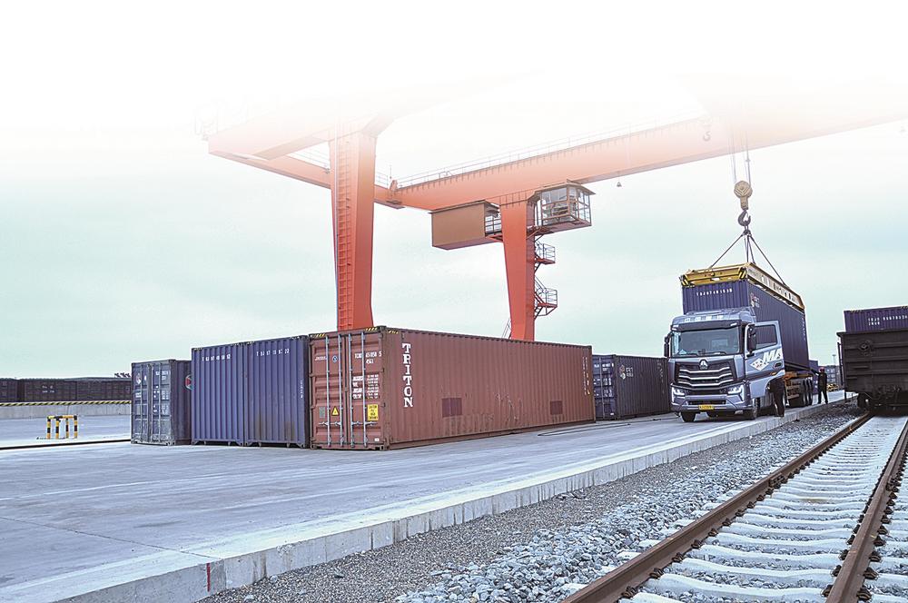 鹽城北站貨場(chǎng)組織吊裝農(nóng)副產(chǎn)品準(zhǔn)備上專(zhuān)列。 記者 黃海峰 攝