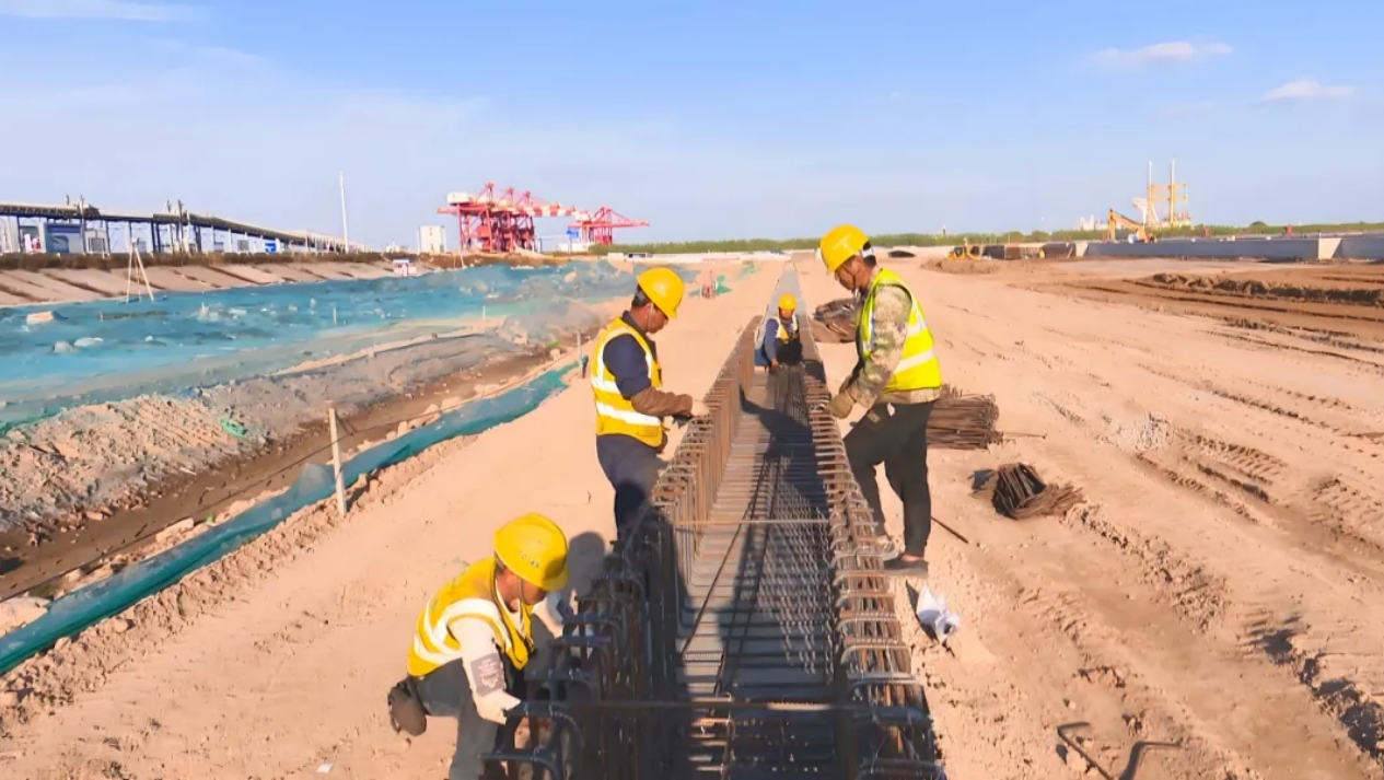????濱海港區(qū)主港區(qū)北區(qū)通用碼頭三期工程位于濱海港區(qū)規(guī)劃主港池北側(cè),新建一個以裝卸散裝為主的公共碼頭,總投資約8億元,共布置10萬噸及通用泊位1個,泊位總長310m,設(shè)計通過能力為415萬噸/年,可滿足散貨每年270萬噸、件雜貨每年120萬噸的吞吐量要求。項目于2022年12月開工建設(shè),計劃于今年12月完工。