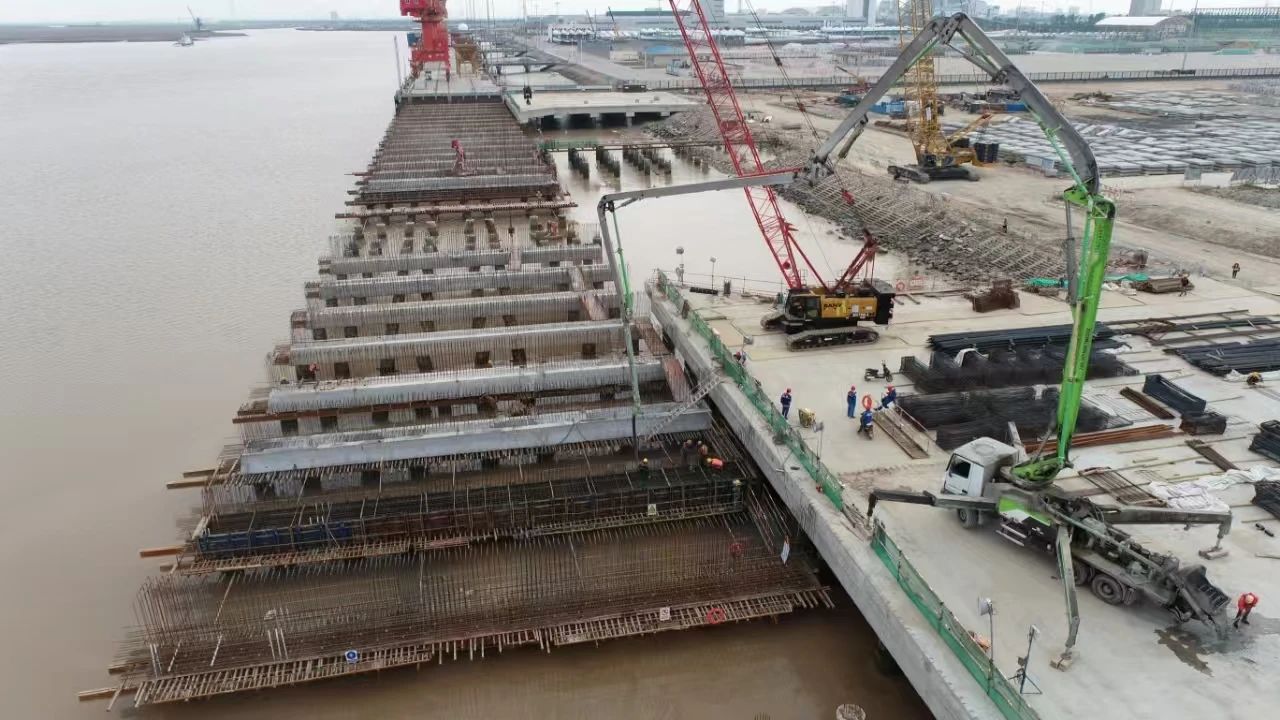 強勁增長背后,是專業(yè)化碼頭集群的加速成型。依托得天獨厚的“風光”資源,鹽城港射陽港區(qū)針對風電設備運輸?shù)奶厥庑枨螅鲃犹峒墧U能,正加速推進四期工程建設,為外貿出口按下“加速鍵”。“改造后引橋寬度增加30%,可滿足150米級超長設備運輸需求。”項目負責人楊曉平介紹,根據(jù)建設計劃,碼頭水工結構預計于今年年底竣工,項目全面運營后,年運輸能力可達250套整機和400套葉片,將充分保障港區(qū)風電產業(yè)的長遠發(fā)展需求。