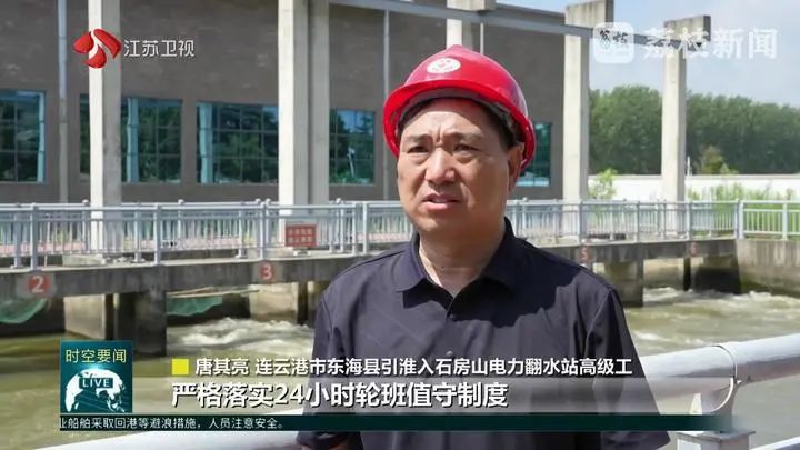 連云港市東海縣引淮入石房山電力翻水站高級工唐其亮說:“嚴格落實24小時輪班值守制度,確保設(shè)備安全高效運轉(zhuǎn),讓寶貴的水資源持續(xù)流入沭南灌區(qū),有效緩解當前緊張用水壓力。”