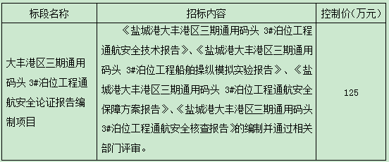 2、項目名稱:大豐港區(qū)三期通用碼頭3#泊位工程通航安全論證報告編制項目