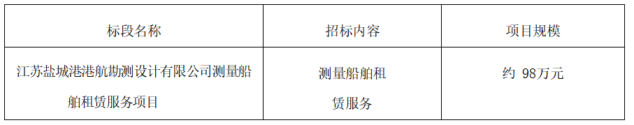 一、?江蘇鹽城港港航勘測設(shè)計(jì)有限公司 就江蘇鹽城港港航勘測設(shè)計(jì)有限公司測量船舶租賃服務(wù)項(xiàng)目進(jìn)行公開招標(biāo),誠邀合格的投標(biāo)人前來報(bào)名參加。