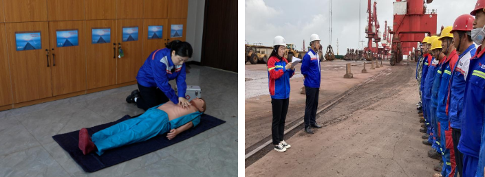 通用碼頭分公司的青年員工們組織了緊急救援演示培訓(xùn)、強(qiáng)對流天氣應(yīng)急演練、消防演練等多場安全生產(chǎn)培訓(xùn),通過實(shí)際案例分析和模擬演練,提高了員工們應(yīng)對突發(fā)安全事故的能力。有員工在培訓(xùn)后表示:“這樣的培訓(xùn)讓我更加清楚在緊急情況下該如何迅速做出正確的反應(yīng)。”