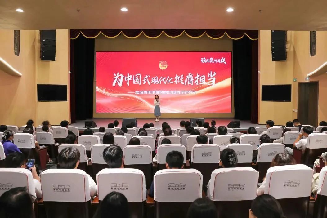 在線路第三站鐵軍劇場(chǎng),5位來(lái)自不同領(lǐng)域的青年講師為青年學(xué)員帶來(lái)了一場(chǎng)內(nèi)容豐富、形式多樣的精神盛宴。江蘇省金牌講解員陳風(fēng)亮老師深情講述了“一塊石頭的故事”,以小見大,折射出新四軍帶領(lǐng)鹽阜人民修筑海堤、抵御海潮的感人事跡;建湖縣淮劇團(tuán)青年演員夏詩(shī)雅老師分享了她的藝術(shù)成長(zhǎng)歷程以及淮劇創(chuàng)新表演方式,引導(dǎo)青年在藝術(shù)熏陶中感悟紅色基因的深厚底蘊(yùn);青年志愿者馬量則結(jié)合自身志愿服務(wù)經(jīng)歷,呼吁大家立足本職崗位,弘揚(yáng)奉獻(xiàn)精神,積極服務(wù)社會(huì)。來(lái)自水務(wù)公司和鹽城機(jī)場(chǎng)的青年講師也結(jié)合自身崗位分別做了分享。