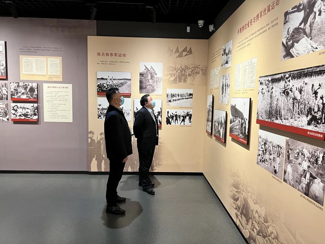 周正雄一行參觀了華中局歷史陳列展,該陳列展系統(tǒng)再現(xiàn)了華中局的歷史和輝煌,凸顯了中國共產(chǎn)黨在領(lǐng)導(dǎo)敵后抗戰(zhàn)中的特殊作用和偉大貢獻。一幅幅圖片、一件件實物、一個個場景,把大家?guī)Щ亓酥袊伯a(chǎn)黨波瀾壯闊的偉大征程。大家仔細觀看史料,認真學(xué)習(xí)新四軍的革命史、華中局在鹽城工作的戰(zhàn)斗歲月。