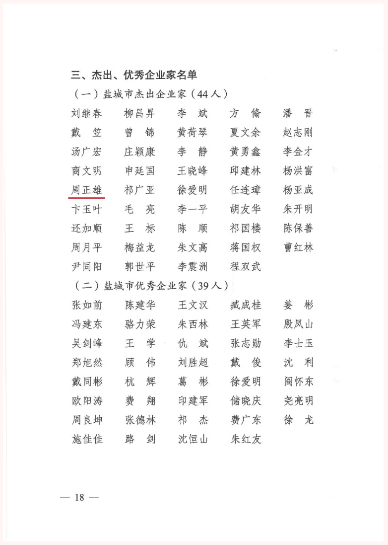 2月7日,春節(jié)后上班第一天,從全市勇當(dāng)沿海地區(qū)高質(zhì)量發(fā)展排頭兵推進(jìn)會(huì)暨2021年度綜合考核表彰大會(huì)上傳來好消息,集團(tuán)榮獲2021年度“爭(zhēng)星創(chuàng)優(yōu)”活動(dòng)“服務(wù)業(yè)五星企業(yè)”榮譽(yù)稱號(hào),集團(tuán)黨委書記、董事長、總經(jīng)理周正雄榮獲“鹽城市杰出企業(yè)家”榮譽(yù)稱號(hào)。