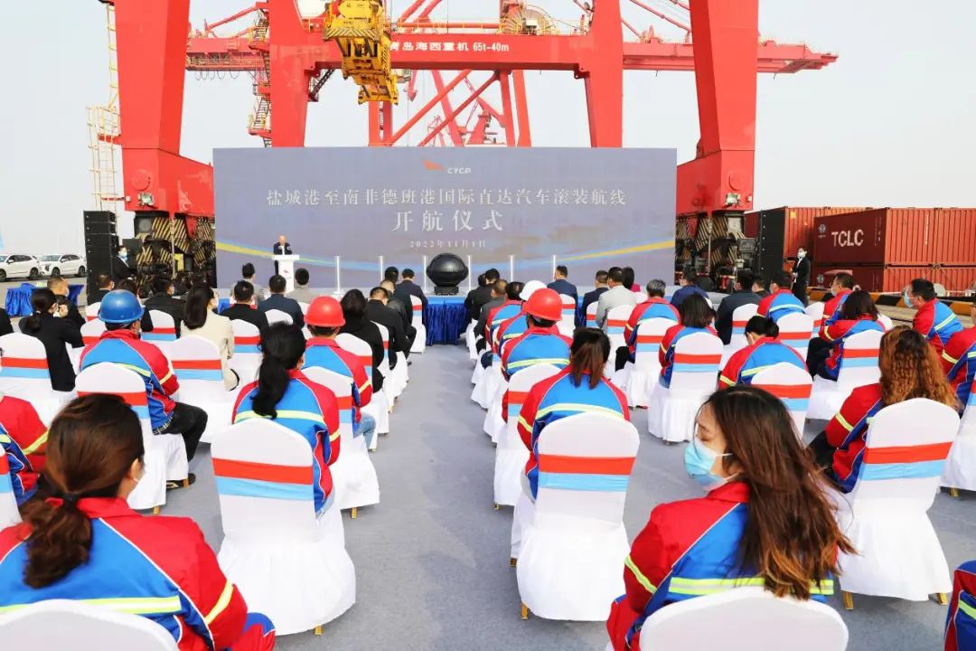 滾裝碼頭是鹽城港打造區域綜合性樞紐港的重要組成部分,承載鹽城汽車出口和活牛進境等口岸功能。集團成立以來,持續在發揮現有港口碼頭能級最大效益上發力,去年順利推進滾裝碼頭對外開放通過省級驗收。今年5月,國務院辦公廳發布《關于推動外貿保穩提質的意見》,指出要鼓勵創新、綠色、高附加值產品開拓國際市場,支持國外消費者購買中國品牌汽車;7月,國家商務部等17個部委聯合發布《關于搞活汽車流通擴大汽車消費若干措施的通知》,滾裝碼頭的發展迎來了新的契機。面對新形勢,集團黨委深入識勢、精準看勢、主動應勢,充分利用現有滾裝碼頭及船舶、汽車堆場等優質資源,積極與長城汽車、北京華圖等業內知名汽車制造企業、物流代表合作,開通鹽城港至南非地區外貿汽車滾裝航線。今天航線的正式開通,將進一步加深鹽城與“一帶一路”沿線國家特別是與非洲國家的經貿合作,為高質量推進“一帶一路”交匯點建設提供堅實的物流通道支撐。