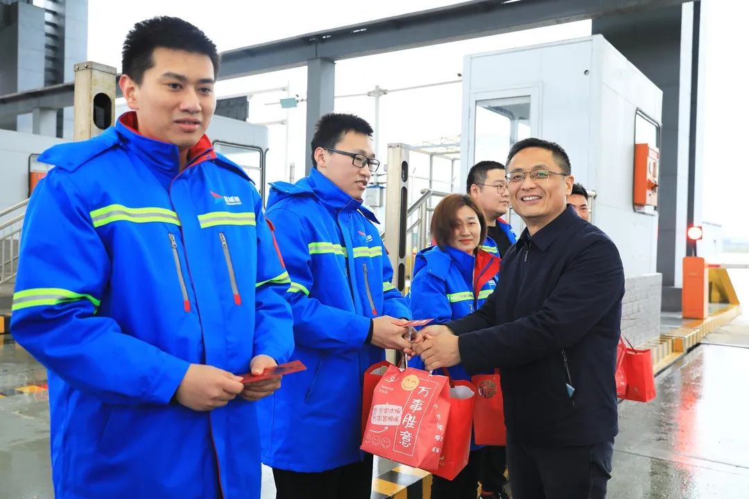 鹽城港港口公司2022年的貨物吞吐量再創(chuàng)歷史新高,為集團(tuán)實(shí)現(xiàn)兩年翻番的目標(biāo)作出了重要貢獻(xiàn)。在港口公司糧食碼頭,陸帥和堅(jiān)守崗位的工作人員一一握手,感謝大家的默默奉獻(xiàn)以及為保障港口安全平穩(wěn)運(yùn)行而付出的努力。他希望港口公司全體干部職工在2023年繼續(xù)以黨的二十大精神為指引,深入貫徹落實(shí)集團(tuán)黨委一屆三次全體(擴(kuò)大)會(huì)議部署要求,進(jìn)一步提高政治站位,扎實(shí)履行好崗位職責(zé),繼續(xù)發(fā)揚(yáng)能吃苦、能戰(zhàn)斗、能奉獻(xiàn)、敢擔(dān)當(dāng)?shù)膬?yōu)良作風(fēng),更加堅(jiān)定目標(biāo)信心,抓實(shí)抓牢碼頭生產(chǎn)經(jīng)營各項(xiàng)工作,為集團(tuán)高質(zhì)量融合發(fā)展再創(chuàng)佳績、再立新功。