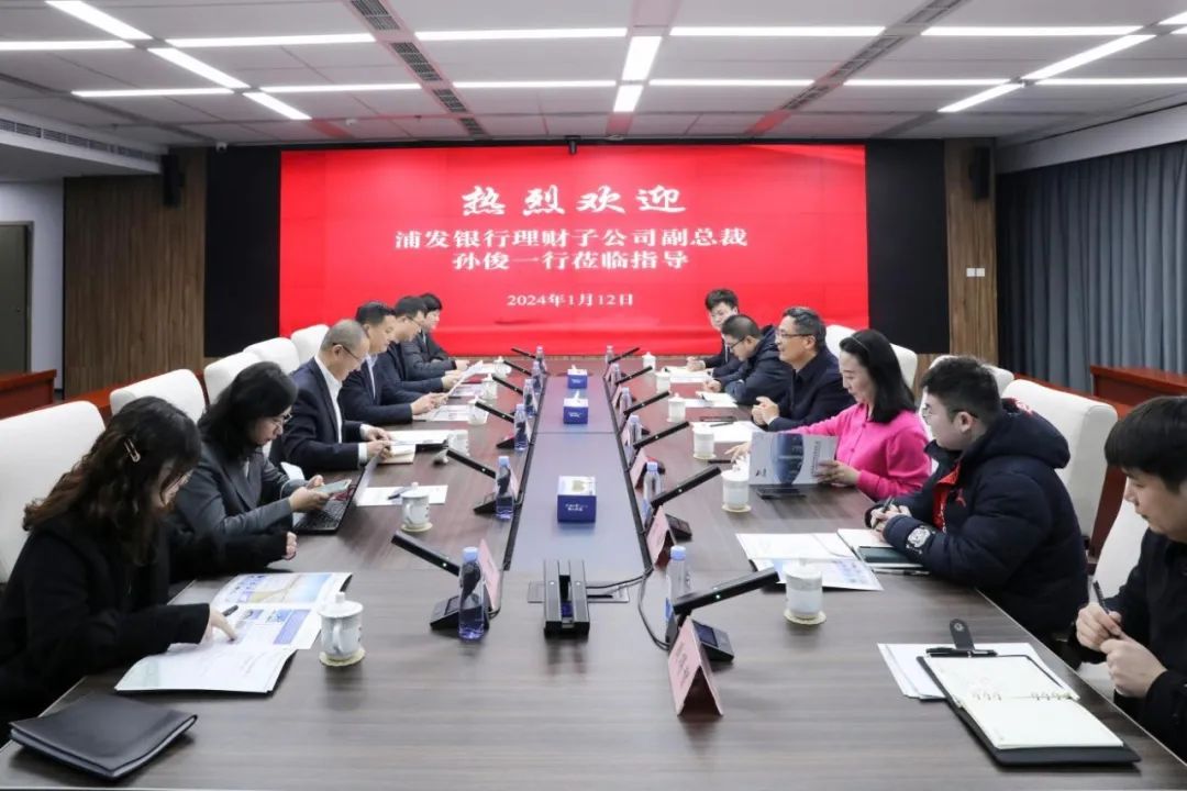 1月12日,浦發(fā)銀行理財(cái)子公司副總裁孫俊率隊(duì)拜訪我集團(tuán),雙方就進(jìn)一步開展全面深入的金融合作,推動(dòng)實(shí)現(xiàn)更高質(zhì)量發(fā)展進(jìn)行交流討論,集團(tuán)黨委副書記、董事、總經(jīng)理陸帥接待孫俊一行。浦發(fā)銀行鹽城分行黨委書記、行長(zhǎng)李明,集團(tuán)副總經(jīng)理袁欣,集團(tuán)投融資部相關(guān)負(fù)責(zé)同志等參加。