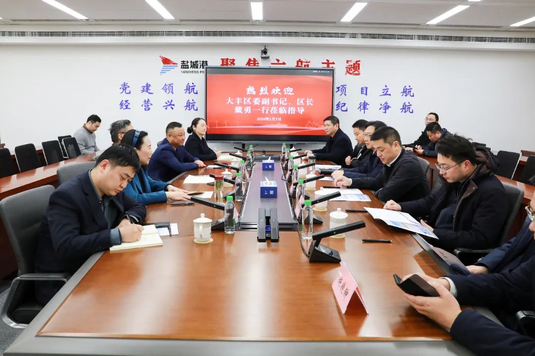陸帥對(duì)戴勇一行的到來表示歡迎。他說,去年,鹽城港首次進(jìn)入全國(guó)沿海港口前20強(qiáng),取得的一系列成績(jī)離不開大豐區(qū)委、區(qū)政府的鼎力支持。目前,鹽城港集團(tuán)把大豐港建設(shè)成為億噸港作為當(dāng)前工作的重中之重,同時(shí)將港區(qū)項(xiàng)目建設(shè)、招商引資、歷史遺留問題診治等事項(xiàng)納入全年重點(diǎn)工作行列。希望大豐區(qū)委、區(qū)政府在鹽城港接下來的發(fā)展中繼續(xù)給予關(guān)心和支持,共同助力全市經(jīng)濟(jì)發(fā)展再上新臺(tái)階。