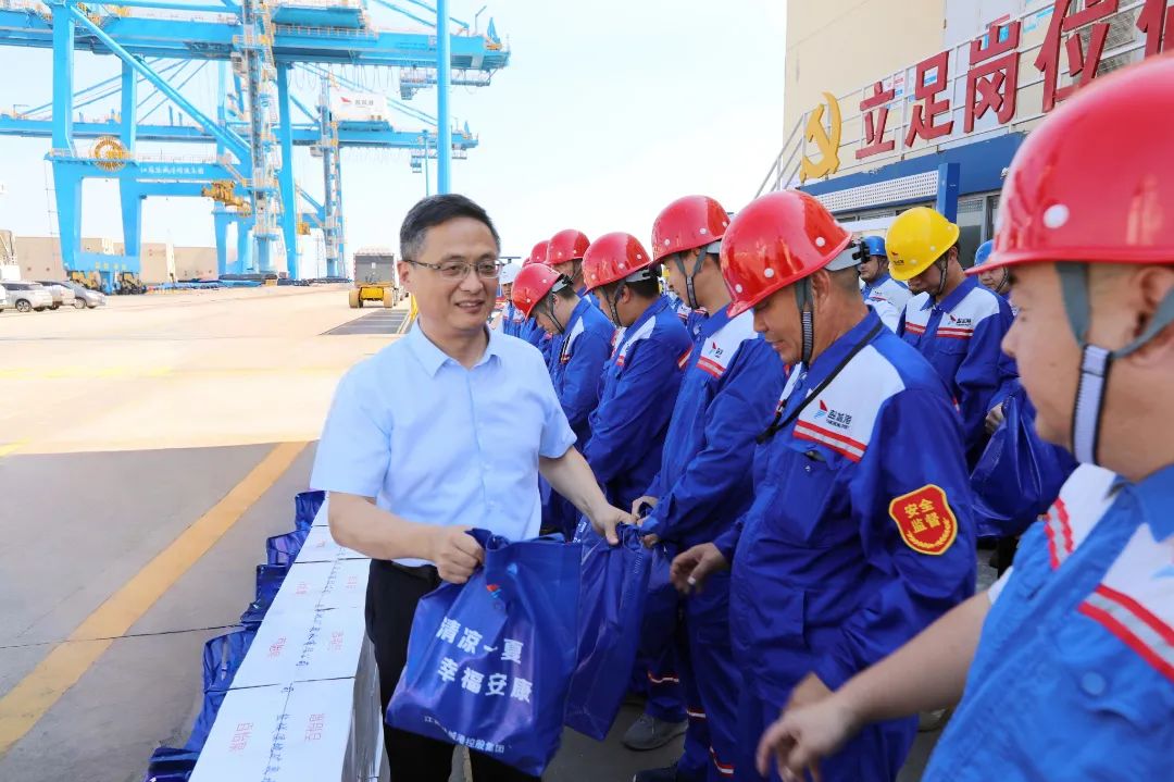 炎炎夏日,酷暑當(dāng)頭。為切實(shí)做好防暑降溫工作,維護(hù)全港廣大職工勞動(dòng)和生命健康權(quán)益,7月30日,集團(tuán)黨委書(shū)記、董事長(zhǎng)周正雄率隊(duì)前往石化碼頭開(kāi)展“夏送清涼”活動(dòng),并代表集團(tuán)黨委、董事會(huì)向高溫下堅(jiān)守一線的勞動(dòng)者送去問(wèn)候和關(guān)懷。