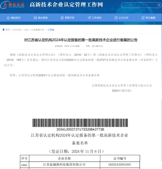 12月3日,鹽城港科技集團(tuán)成功通過“高新技術(shù)企業(yè)”認(rèn)定,提前一年完成國家高新技術(shù)企業(yè)認(rèn)定的既定目標(biāo),標(biāo)志著鹽城港集團(tuán)科技創(chuàng)新工作實(shí)現(xiàn)重大突破,邁入轉(zhuǎn)型升級新階段。