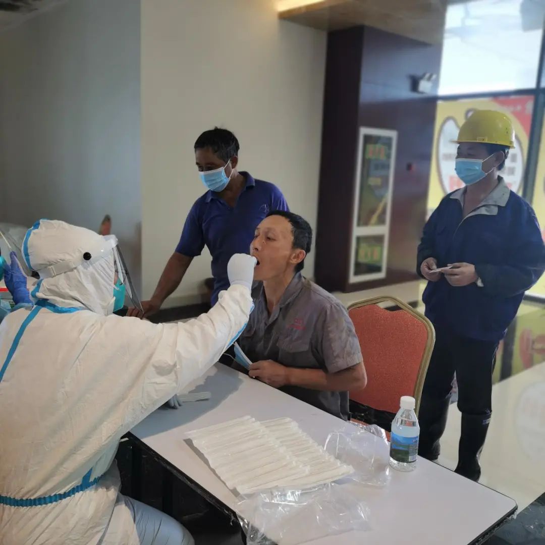同時為確保港區核酸采集應檢盡檢、不落一人,射陽港區組織醫護人員到建設工地設立核酸采集點,幫助無智能手機的外來務工人員解決信息登記難題,全面做好核酸采集工作。當日核酸采集持續3個多小時,共完成565人次核酸采樣量。