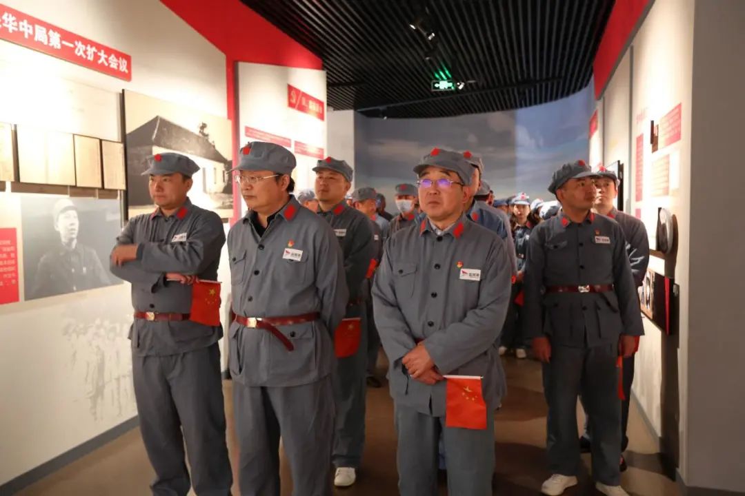 活動中,全體黨員干部身穿新四軍軍裝,懷著無比崇敬的心情走進新四軍停翅港、阜寧中共華中局第一次會議舊址等地,在莊嚴的黨旗下重溫入黨誓詞,鏗鏘有力的聲音,震撼著每個人的心靈。在講解員的帶領下,全體黨員干部通過一張張珍貴的老相片、一件件生動的雕塑、一件件先烈真實遺物,真切感受到了革命前輩們不畏艱難、艱苦奮斗的精神,深深感染了在場每一個人,仿佛回到了那個激情燃燒的年代。