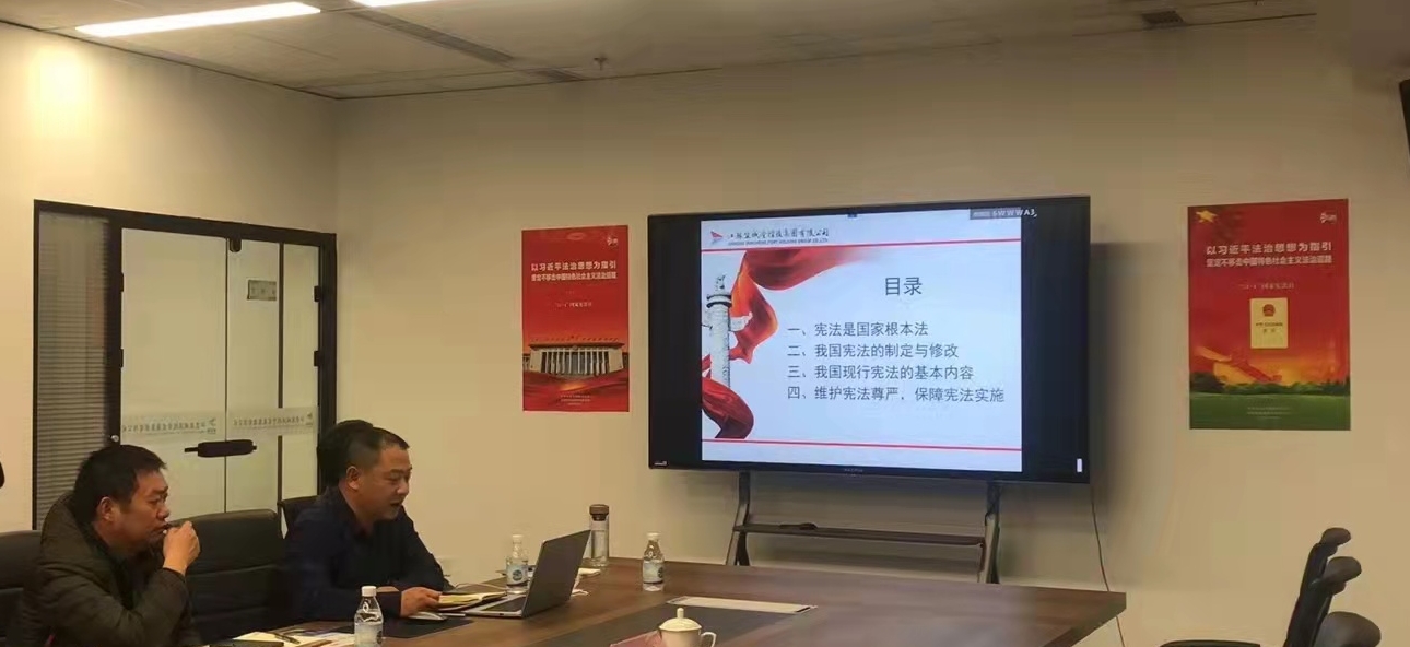 “憲法宣傳周”活動(dòng)開展以來,各級公司紛紛在醒目位置張貼憲法宣傳海報(bào),營造了濃厚的宣傳氛圍。12月4日,集團(tuán)本部及各子(控)公司全員開展憲法學(xué)習(xí)教育活動(dòng)。集團(tuán)法務(wù)部推出《法治護(hù)航》(12·4國家憲法日專刊),本期專刊讀本匯編了憲法原文、憲法沿革、習(xí)近平總書記關(guān)于憲法的重要論述、憲法學(xué)習(xí)自測題;大豐港區(qū)發(fā)布了憲法知識公示欄,組織員工參觀學(xué)習(xí);響水港區(qū)發(fā)放了憲法小冊子,組織“憲法學(xué)習(xí)進(jìn)工地”活動(dòng);集團(tuán)官網(wǎng)“法治護(hù)航”版塊專題發(fā)布《憲法一直在我身邊》《憲法讓生活更美》《我與憲法》視頻,通過一系列生動(dòng)圖片、視頻,形象生動(dòng)普及憲法知識。