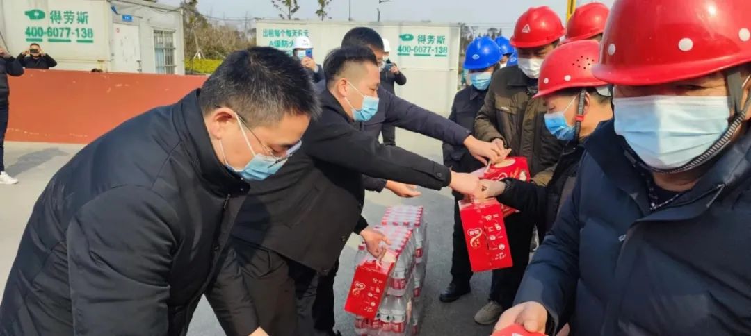 在慰問現(xiàn)場,項目管理公司相關(guān)負責(zé)同志首先對工友們的堅守與付出表示了感謝,在年初二就舍棄與家人團聚,來到項目施工現(xiàn)場參加作業(yè),這種舍小家、為大家精神,不僅體現(xiàn)了強烈的責(zé)任擔當和奉獻精神,更展現(xiàn)了良好的精神風(fēng)貌和大局意識。隨后把慰問物資一一送到工友的手中,并叮囑廣大工友們,要科學(xué)安排作息時間,保持良好精神狀態(tài),同時做好工地防疫、工地衛(wèi)生、工地消防等安全工作,久久為功、眾志成城,相信在廣大工友的辛勤勞作和夜以繼日的奮戰(zhàn)下,疫情隔離點項目一定能順利按時完成。
