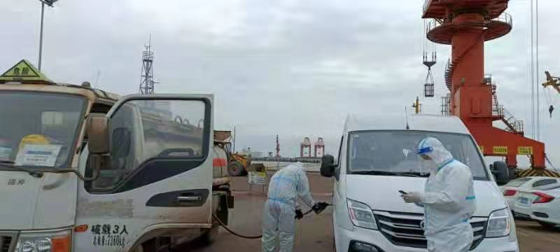 初春的早晨,寒風(fēng)依然刺骨,成品油公司防疫供油專(zhuān)車(chē)卻已早早地等候在大豐港二期碼頭。“師傅,您好,成品油公司防疫供油專(zhuān)車(chē)申請(qǐng)進(jìn)碼頭供油,這是‘雙碼’、核酸檢測(cè)結(jié)果......”這是成品油公司供油專(zhuān)車(chē)進(jìn)出港口的景象。