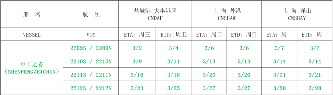 滬 鹽 專 線 2022 年 3 月 份? 船 期 表