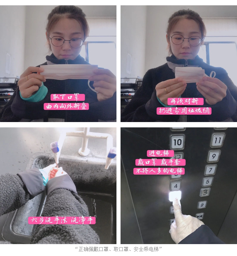 采用“敲門(mén)行動(dòng)”的方式在單位核實(shí)各職工核酸檢測(cè)信息、了解家庭人員情況、外市人員回豐情況,對(duì)重點(diǎn)人員嚴(yán)格執(zhí)行“7+7”的隔離要求。圍繞“近期公共場(chǎng)所人群佩戴口罩覆蓋率達(dá)95%、今后逐步提升”的目標(biāo),大豐港區(qū)要求各級(jí)子(控)公司所有職工上班佩戴口罩,并確保有人動(dòng)員引導(dǎo)、有人提醒監(jiān)督。為了讓每個(gè)人可以正確的佩戴口罩,集團(tuán)職工還自制了“正確佩戴口罩、取口罩、安全乘電梯”的小步驟供大家學(xué)習(xí)。