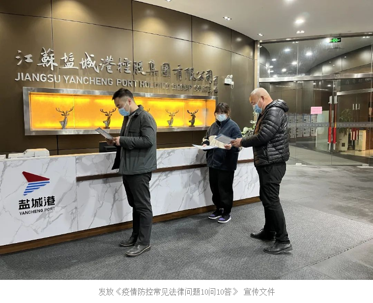 疫情就是生命,防控就是責(zé)任。為落實(shí)鹽城港集團(tuán)疫情防控工作會(huì)議精神,營(yíng)造良好的疫情防控法治環(huán)境,鹽城港大豐港區(qū)積極開(kāi)展“依法防控、普法同行”專(zhuān)項(xiàng)行動(dòng),通過(guò)宣傳疫情防控法治知識(shí),引導(dǎo)職工增強(qiáng)自我防護(hù)意識(shí)和法治意識(shí),把普法宣傳貫穿到疫情防控工作的全過(guò)程,筑牢疫情防控的物理屏障。