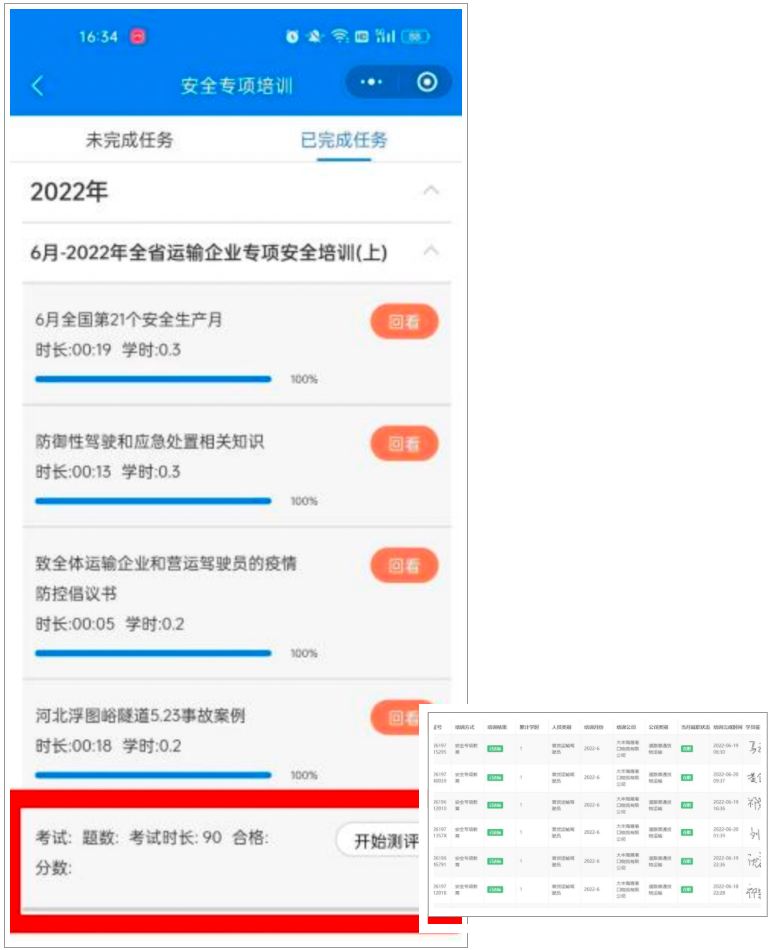 同時,6月20日至7月5日,物流公司組織相關管理人員和駕駛員進行“交學網”學習培訓,通過觀看視頻、組織考試等方式,進一步提升了駕駛員法律意識,安全意識、文明意識、責任意識,從源頭上預防道路交通事故的發生,切實做到“知風險、會避險”,并且參與率和合格率都達到100%。