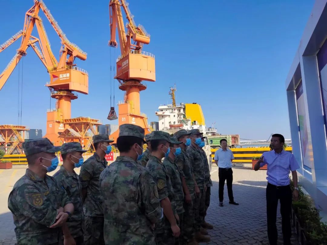 賽前,駐地官兵一行來到濱海港區進行實地觀摩,雙方就如何抓好黨建聯建、加強國防建設等內容進行交流。雙方均表示將充分利用好軍企共建平臺,深度探索軍企融合機制與模式,扎實推進軍民融合高質量發展,常態化舉辦擁軍共建活動,全力激發干部職工愛國擁軍熱情以及部隊參與地方經濟建設的決心。