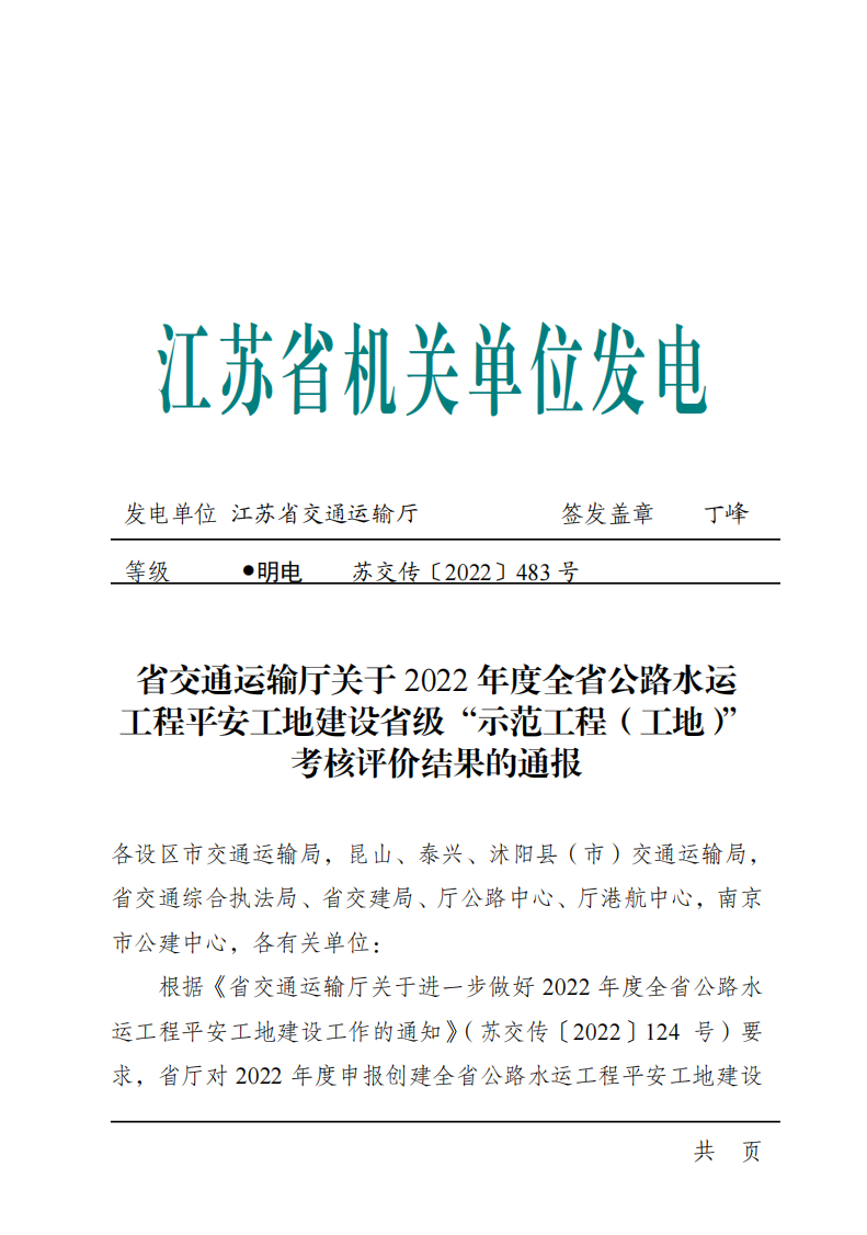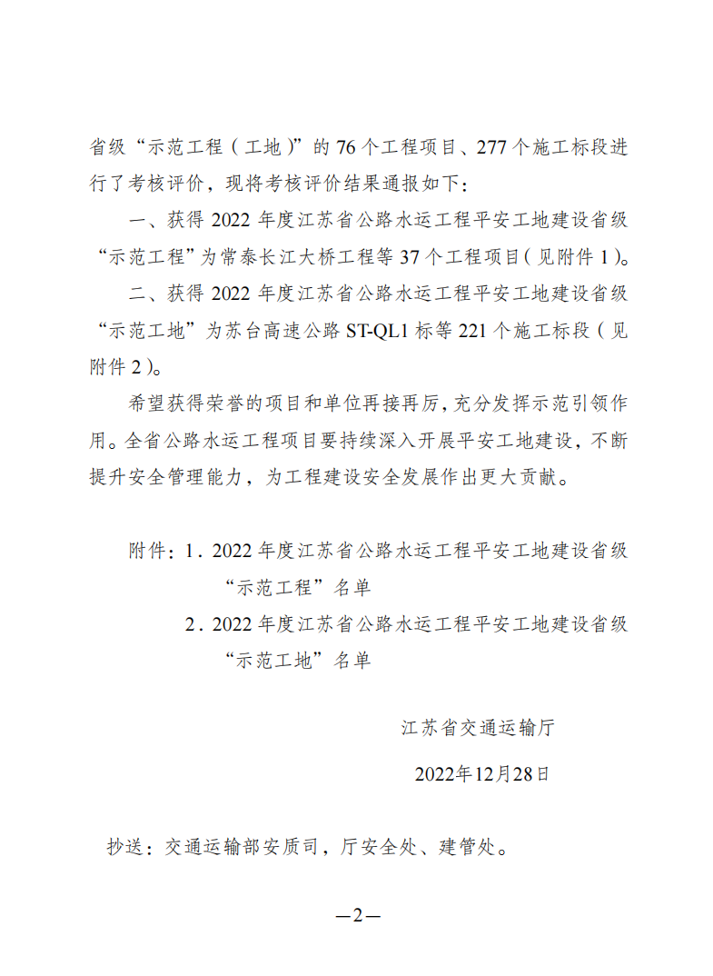 近日,省交通運輸廳發布2022年度全省公路水運工程平安工地建設省級“示范工程(工地)”考核評價結果,灌河口5萬噸級航道整治工程2個疏浚標段獲評2022年度江蘇省公路水運工程平安工地建設省級“示范工地”。