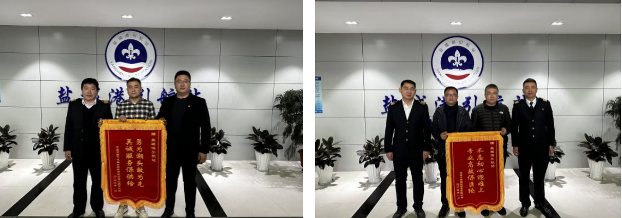 1月12日,中海油江蘇天然氣公司、中海石油氣電集團(tuán)、鹽城中能國際船務(wù)公司一行向鹽城港引航站贈送了題為“真誠服務(wù)保供給,勇為潮頭敢為先”“專業(yè)高效保巨輪,不忘初心迎難上”的錦旗,對鹽城港引航站在為中國海油鹽城“綠能港”冬季能源保供保暢過程中提供的熱情幫助和優(yōu)質(zhì)服務(wù),以及引航員們在保障LNG船舶安全靠泊所作出的努力奉獻(xiàn)表示感謝。