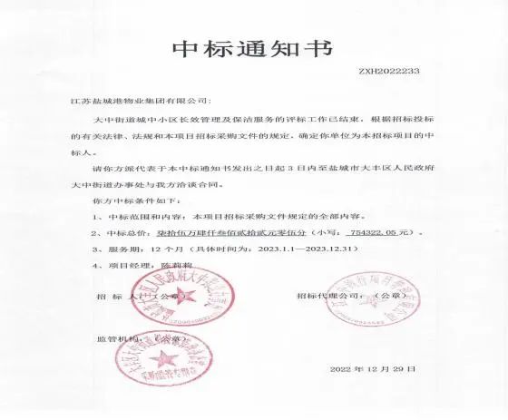 拓市場,保增長,項(xiàng)目業(yè)績創(chuàng)一流。實(shí)業(yè)集團(tuán)在提升物業(yè)服務(wù)質(zhì)量、房屋租賃水平,擴(kuò)大鹽城港集團(tuán)“內(nèi)循環(huán)”的同時(shí),逐步向外部市場拓展。1月,黃海港城公司與中天大豐電纜有限公司成功簽訂員工宿舍租賃存量住宅業(yè)務(wù)合同,合同金額近30萬元。物業(yè)公司成功中標(biāo)大中街道城中小區(qū)長效管理及保潔服務(wù),中標(biāo)價(jià)約75萬元。