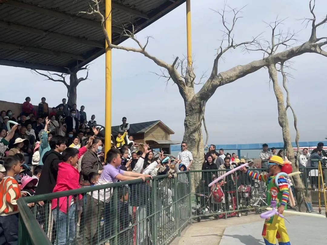 在鹽城港大豐港區(qū)動物園內(nèi),游客們興奮地向各種動物揮手打招呼,動物們或仰頭眨眼、或深情凝視、或大擺造型,引得游客們一陣陣笑聲。憨態(tài)可掬的大熊貓云兒、震生,時兒扭臀散步,時兒啃吃竹葉,時兒臥地大睡,惹得游客們不停地歡呼拍照。同時,工作人員精心籌備的節(jié)目也聚集了大量人氣,大家與工作人員熱情互動,現(xiàn)場充滿了一片歡樂祥和的節(jié)日氣氛。