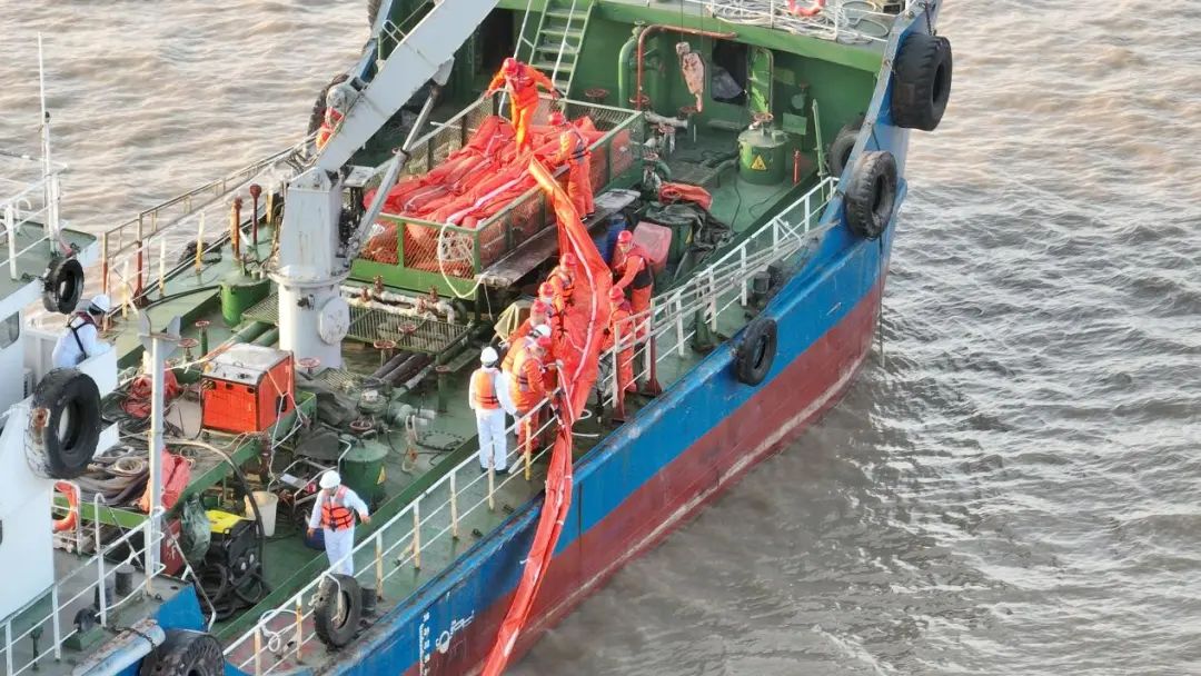 演練模擬在石化碼頭7號泊位,由于海上風(fēng)浪較大,在此卸船作業(yè)過程中,貨船受到風(fēng)浪和海水沖擊,致使輸油臂和船方相連法蘭處松動,柴油從法蘭處噴出,可燃?xì)怏w檢測儀報警,發(fā)生泄露溢油安全事故。事故發(fā)生后,石化碼頭應(yīng)急領(lǐng)導(dǎo)小組立即啟動事故應(yīng)急預(yù)案,開展事故應(yīng)急處置,控制事態(tài)發(fā)展并及時向有關(guān)部門報告。演練期間,各應(yīng)急處置人員反應(yīng)迅速、動作規(guī)范、配合默契,溢油快速得到控制和清除。