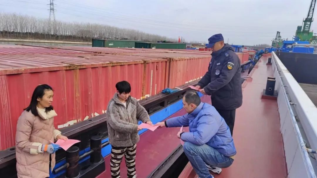 節日期間,水上服務區全面強化值班值守,確保船舶規范停泊,對來往船舶發放《安全管理告知書》宣傳單100余份,不斷加強水上“春運”安全監管責任落實。