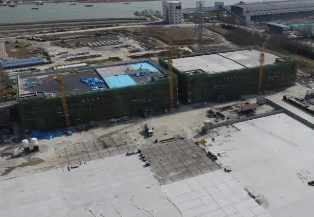 射陽港區(qū)綜合倉儲物流項目1#、2#倉庫已完成主體及二次結構施工;停車場區(qū)域第一層混凝土已全部完成澆筑、面層混凝土完成澆筑75%;墻體粉刷完成約70%,屋面防水、保溫已基本完成,消防管道安裝完成約85%,窗框安裝完成約30%,兩座沉井混凝土已澆筑完成。完成總進度的75%。主體結構驗收完成后,全面進入裝飾裝修、門窗安裝、智能化、水電消防等工程的施工。
