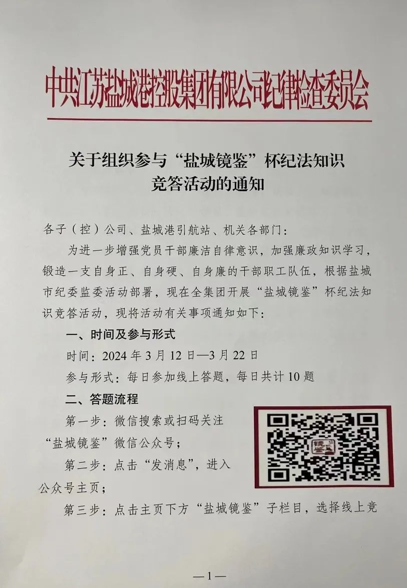 (組織開展“鹽城鏡鑒”杯紀法知識競答活動)