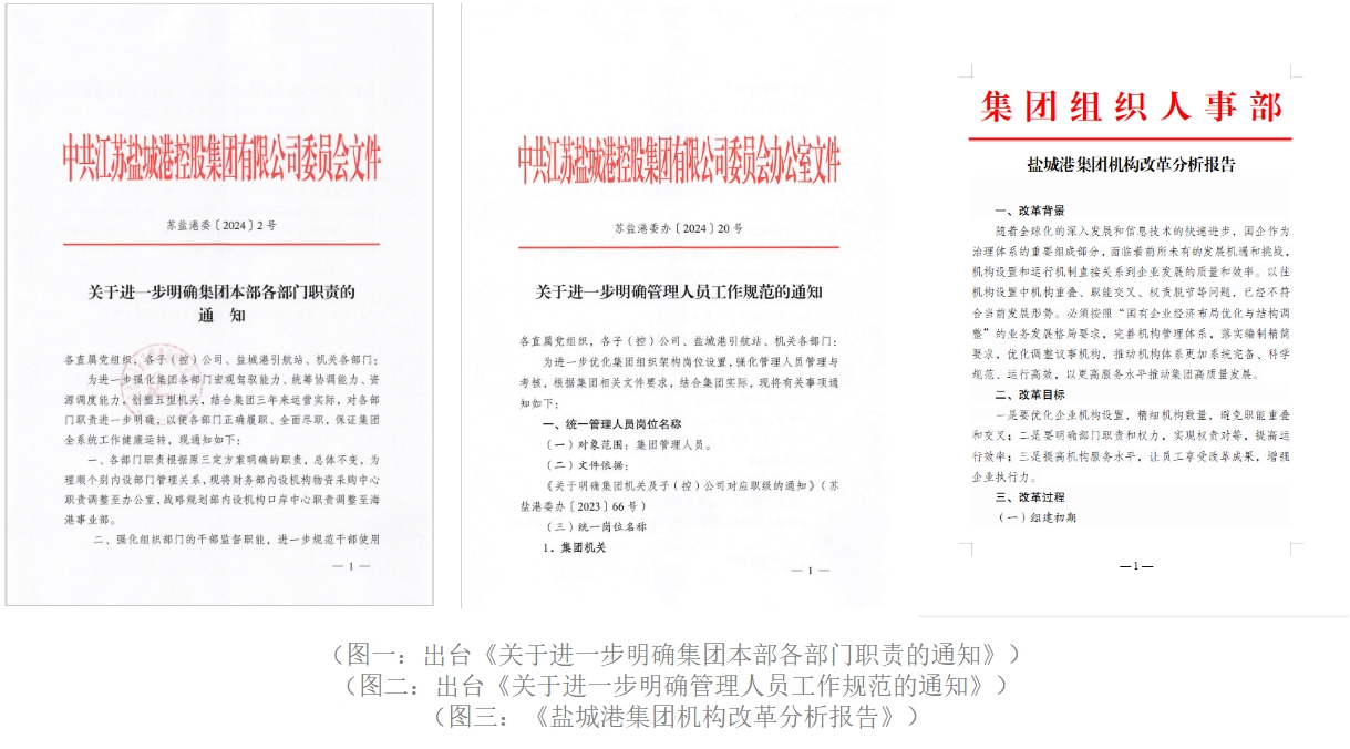 搭建高效化組織架構,優化管理體制。出臺《關于進一步明確集團本部各部門職責的通知》《關于進一步明確管理人員工作規范的通知》,科學優化集團組織架構,健全與科學規范要求相適應的機構編制管理體系,推動集團機構職能體系更加系統完備、科學規范、運行高效,明確集團機關及子(控)公司對應職級,統一管理人員崗位名稱,進一步規范人員管理。形成《鹽城港集團機構改革分析報告》,系統總結鹽城港集團成立以來機構改革情況,明確下一步改革工作計劃。