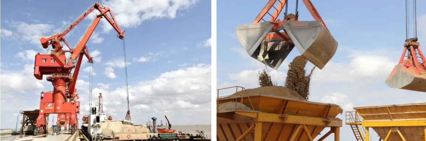 紅色的門機下行駛著來來往往的貨車,紅色的漏斗等著他一次次的閉合