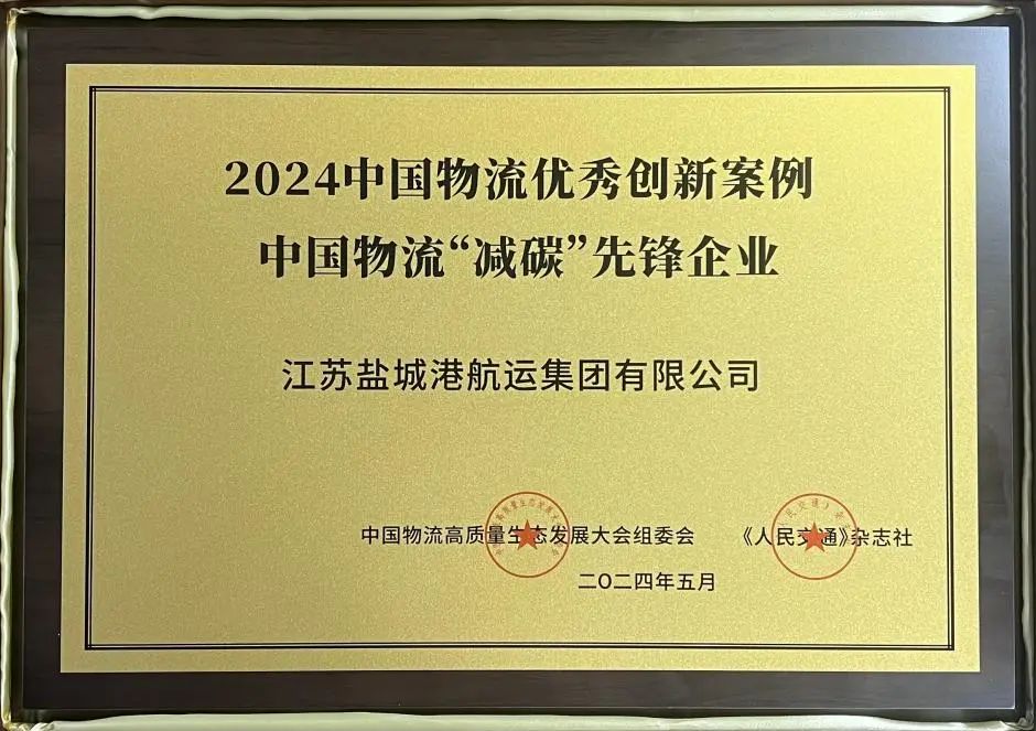 鹽城港航運集團榮獲“2024年中國物流‘減碳’先鋒企業”