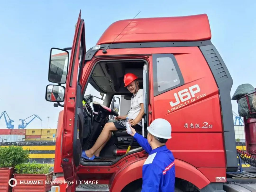 雖已入秋,碼頭高溫不減。一輛輛卡車排列在碼頭,靜靜等待土石裝卸運輸指令,卡車司機也一同經歷著高溫的考驗。為確??ㄜ囁緳C們的安全與健康,保障運輸不斷檔,港區派專人為司機送去礦泉水等清涼物資,并叮囑他們行車前要仔細檢查車況,注意駕駛安全,預防高溫中暑和各類安全事故發生。貨車司機們紛紛表示,這樣的關懷讓他們感受到了絲絲涼意和滿滿溫情。
