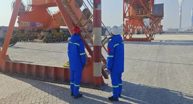 為確保冬季生產安全、穩定與高效運行,濱海港區設備組提前行動做好設備維護保養,有效迎接寒冬考驗。對港區周邊及碼頭作業區的管道、注水泵、閥門、消防栓等戶外設施、設備進行了全面檢查與保養,確保不放過任何盲點和死角,尤其是對門機設備的減速箱油位、鋼纜松緊程度以及各連接部位的緊固狀況等關鍵部件、重點區域著重進行了仔細查驗;對易損件提前進行更換,對易凍易裂的裸露閥門、消防管道等做好保溫包裹,確保設備在低溫環境下能夠正常運行。