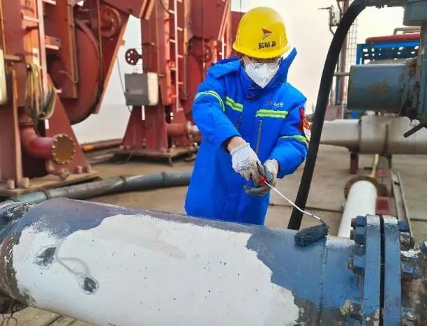 行動(dòng)期間,工作人員根據(jù)作業(yè)方案嚴(yán)格落實(shí)相關(guān)防范措施,采用科學(xué)的除銹方法與現(xiàn)場(chǎng)相匹配的漆料,仔細(xì)打磨掉碼頭裝卸設(shè)備、管道、閥門等設(shè)備表面的銹跡與舊漆,進(jìn)行細(xì)致處理,然后均勻涂刷上底漆與面漆。每一道工序都飽含專注與努力,確保涂層平整光滑、附著力強(qiáng),能為設(shè)施提供長效防護(hù)。
