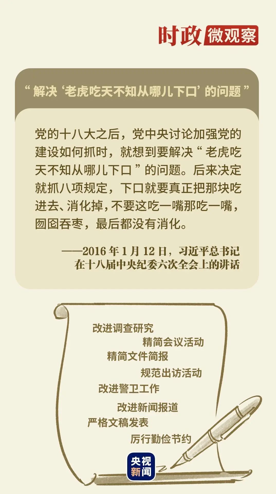《時政微觀察》選取習近平總書記關于中央八項規(guī)定的生動論述,闡明其中深意。