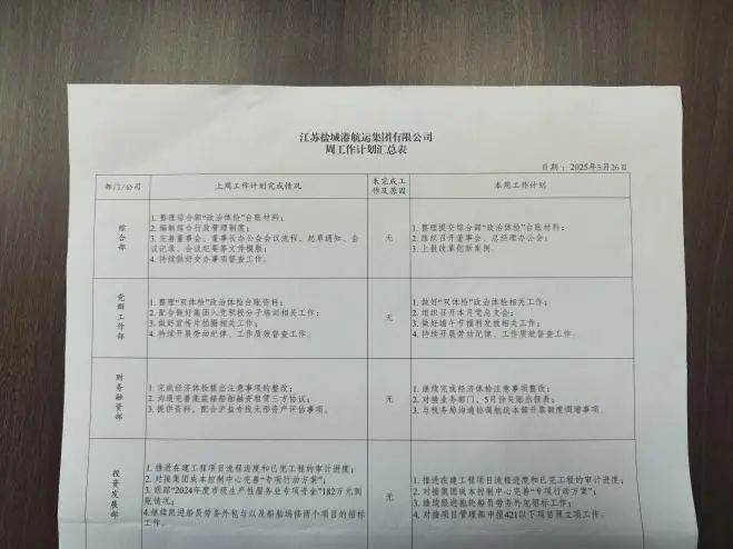 堅(jiān)持每周一召開(kāi)工作例會(huì),學(xué)習(xí)鹽城港集團(tuán)黨委會(huì)“第一議題”相關(guān)文件、研究交辦事項(xiàng)完成情況及近期重點(diǎn)工作任務(wù)推進(jìn)情況。采用“三言兩語(yǔ)”匯報(bào)機(jī)制,各部門(單位)負(fù)責(zé)人逐一匯報(bào)重點(diǎn)工作完成情況及本周工作計(jì)劃,分管領(lǐng)導(dǎo)補(bǔ)充完善,主要領(lǐng)導(dǎo)結(jié)合集團(tuán)黨委部署,圍繞航運(yùn)集團(tuán)發(fā)展實(shí)際,就重點(diǎn)工作事項(xiàng)再部署、再?gòu)?qiáng)調(diào),進(jìn)一步提高思想認(rèn)識(shí),增強(qiáng)做好當(dāng)前各項(xiàng)重點(diǎn)工作的責(zé)任感和緊迫感,牢固樹(shù)立“一盤棋”思想,夯實(shí)工作責(zé)任,細(xì)化工作舉措,確保有序推進(jìn)。