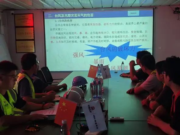安環(huán)部將沉浸式的“安全課堂”送到項目現(xiàn)場。安全講師結合近年來發(fā)生的真實案例,生動剖析了臺風、強降雨、雷電等災害天氣的特點及危害,重點講解了:項目現(xiàn)場的洪澇災害薄弱點識別、汛期臨時用電、臨邊防護等關鍵風險管控、應急報警、人員疏散、傷員急救等核心流程。