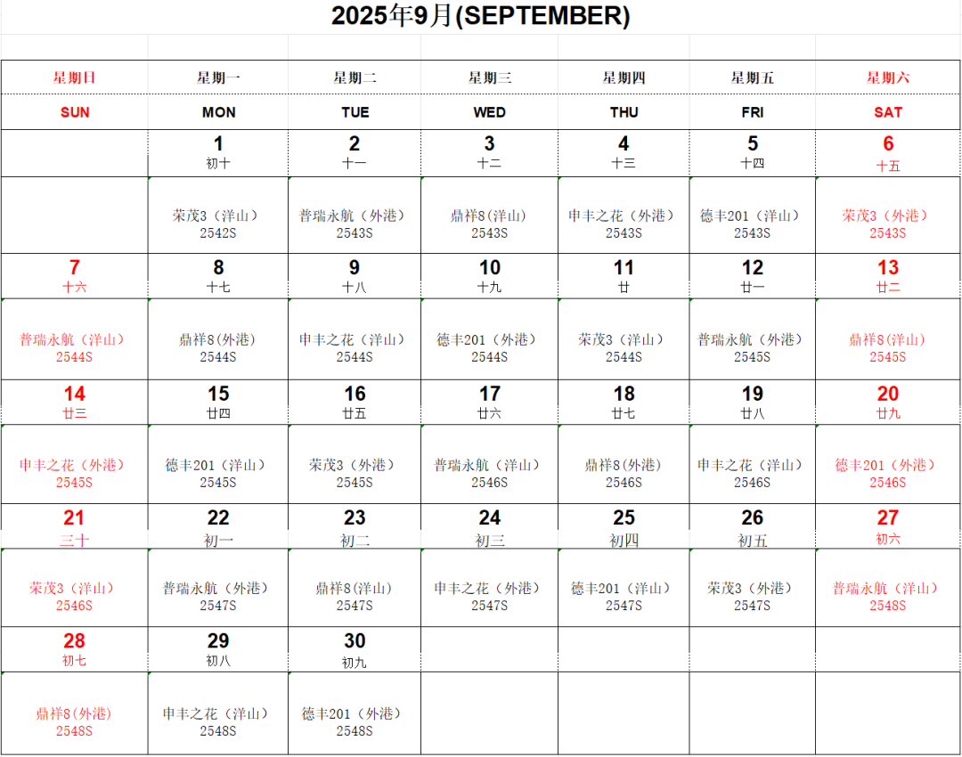 船期速遞丨叮咚!“滬鹽專線”九月船期表已到達