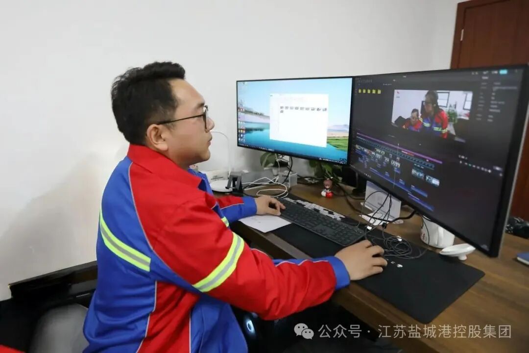 如何讓故事不流于表面?港泊內容團隊信奉“腳底板下出新聞”。在內容創作過程中,視頻制作組與采訪報道組協同行動,深入港區各個崗位,發掘一線員工的先進事例。他們用鏡頭捕捉鹽城港各崗位員工為集團高質量發展拼搏的場景,陸續推出一系列鮮活的事跡報道和視頻。這些作品以真實的內容凝聚起合力,讓奮斗精神在鹽城港各處傳遞。