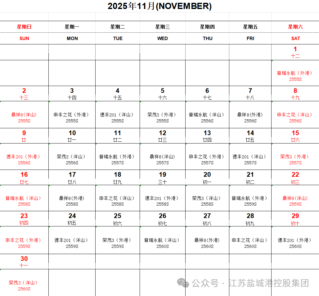 “滬鹽專線”11月船期表已經(jīng)新鮮出爐!