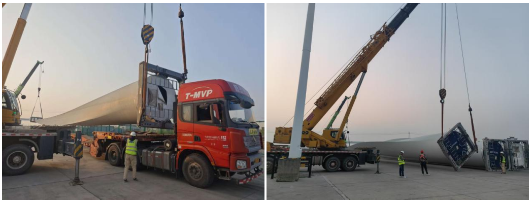 “百日攻堅(jiān)”號(hào)角吹響以來(lái),鹽城港保稅物流中心主動(dòng)聚焦重大件貨物物流服務(wù)痛點(diǎn)難點(diǎn),將風(fēng)電葉片入庫(kù)作業(yè)列為重點(diǎn)攻堅(jiān)任務(wù)。籌備階段,中心組建專項(xiàng)攻堅(jiān)小組,綜合研判運(yùn)輸銜接、場(chǎng)地調(diào)度、機(jī)械適配等多維度因素,制定“一貨一策”詳盡作業(yè)方案,對(duì)流程節(jié)點(diǎn)逐一梳理、閉環(huán)解決;同步協(xié)調(diào)管委會(huì)、海關(guān)等職能部門,針對(duì)風(fēng)電葉片運(yùn)輸?shù)缆吠ㄐ行枨螅ㄟ^(guò)拆除影響通行的路燈等舉措保障道路通暢,進(jìn)一步優(yōu)化作業(yè)保障體系;搭建分工明確、協(xié)同高效的作業(yè)團(tuán)隊(duì),提供全程精細(xì)化服務(wù)。針對(duì)風(fēng)電葉片“超長(zhǎng)、超重”的特性,中心專項(xiàng)開展安全操作集中培訓(xùn),明確崗位職責(zé)、規(guī)范統(tǒng)一指揮流程,強(qiáng)化安全技術(shù)交底與風(fēng)險(xiǎn)點(diǎn)辨識(shí)控制,全方位筑牢大件作業(yè)安全防線,以專業(yè)能力為攻堅(jiān)任務(wù)保駕護(hù)航。