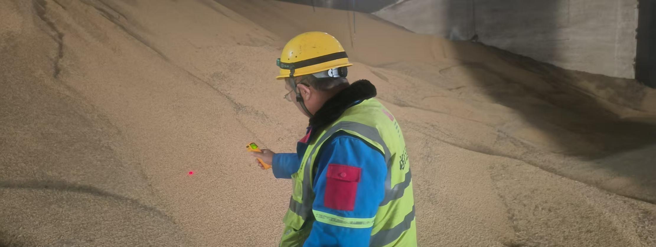 穿梭倉間、手持測溫槍、細(xì)致記錄